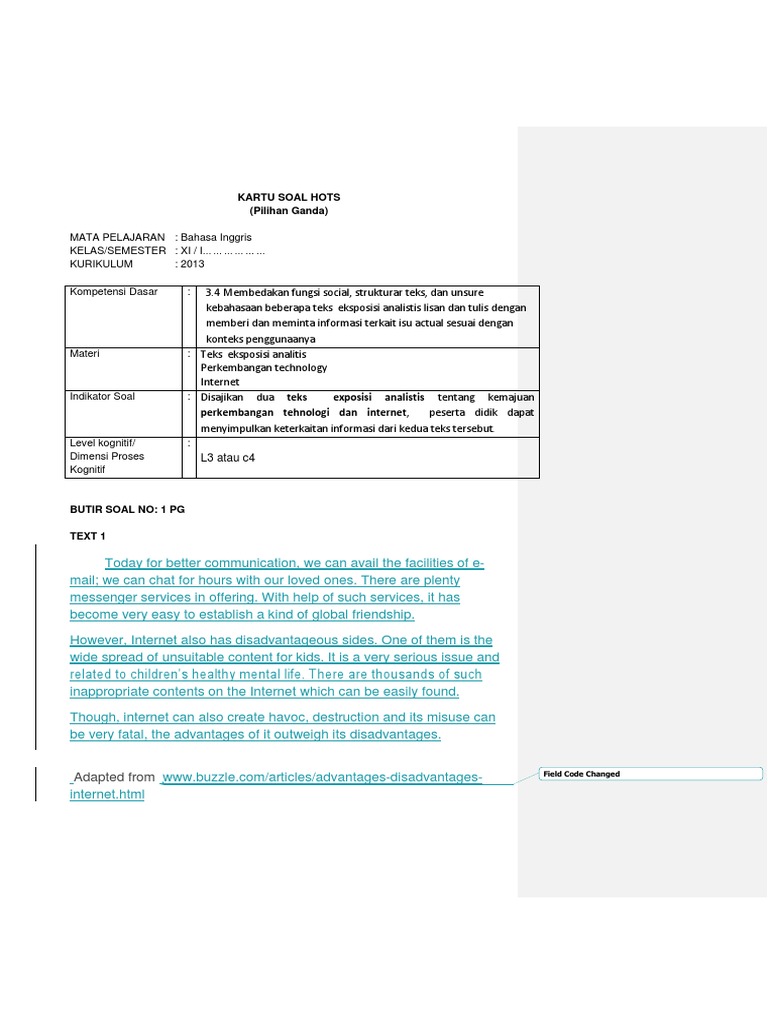 Bospedia KISI-KISI PPH 1 Semester Satu Tahun Ajaran 2019 2020 40 soal tentang teks negosiasi dan teks. C4 HOTS Perhatikan kutipan teks berikut ini. Pembahasan Lengkap seputar Soal HOTS.