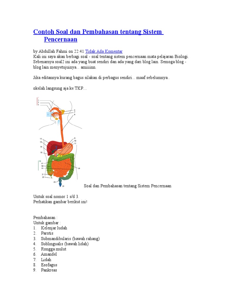 Contoh Soal Sistem Pencernaan Dan Pembahasannya